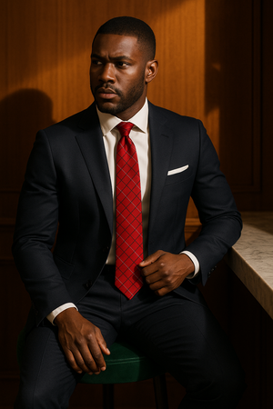 The Red Square Necktie is a great option if you need to add a bright color matched with a fine print to your wardrobe. This cool tie will be the ying to your black suit's yang whenever you pair them together.